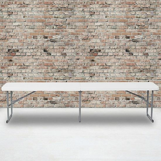When heading off to the game, park or any event where you need seating for the family you can take along this 6 foot foldable bench. This functional seating alternative is waterproof, impact and stain resistant. Quickly assemble by simply unfolding the powder coated locking legs. This piece folds in half for easy storage or travel and the included carrying handle is perfect for on the go seating or relocating around the home for extra guests.