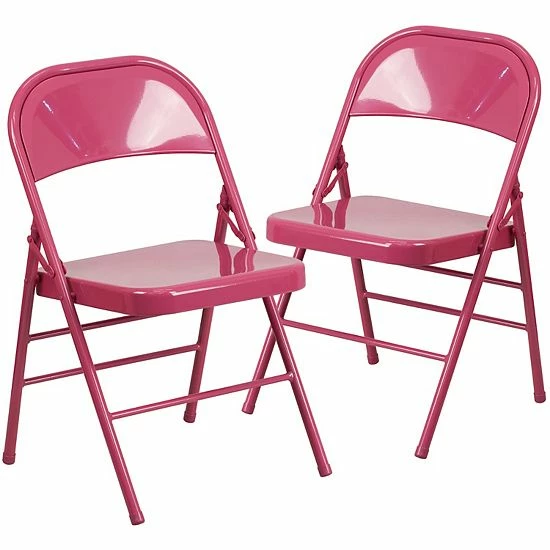 Commercial-grade metal folding chairs are designed to be lightweight but durable. This product is engineered and built with premium materials and boasts riveted steel components that will withstand heavy duty use for event, business, and home usage. These metal folding chairs feature premium 18 gauge curved steel frames and double-hinged frames for worry-free seating. With a variety of vibrant color options, you can choose what would best pair with your event needs. This is a commercial-grade on-demand seating solution convenient for weddings, school functions, barbecues, game nights, and catering events. Folding chair highlights: – Ready-to-use with no assembly required – Triple braced legs with integrated footrest – Suitable for indoor-outdoor use; Store indoors to protect frame from excessive moisture. – Floor caps to prevent surface and flooring damage – 300 lb. weight capacity- These low-maintenance party event chairs wipe down easily after luncheons and fold easily for storage, transport, or floor maintenance. Make a smart investment by purchasing multiple folding chairs for your rental business, waiting room, or corporate training rooms. Purchase our folding chair dolly for quick and easy setup and takedown.