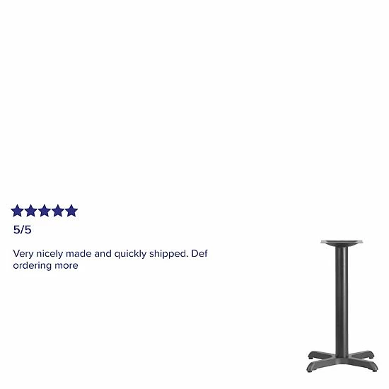 Get the look you want in your restaurant, break room or cafeteria with table bases and coordinating table tops. This table height base features cast iron construction designed for commercial use so you can be assured it will withstand the daily rigors in the hospitality industry. The black powder coated finish of the base easily matches any bar or restaurant decor. Whether you are just starting your business or upgrading your furniture, invest wisely with this table base designed to withstand years of heavy use.