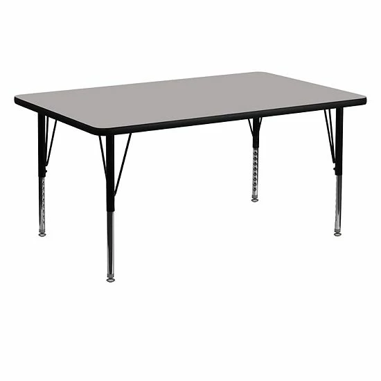 This Rectangle Activity Table is a must have for daycare, preschool and early childhood development centers. Enhance collaborative learning by grouping tables together. It will accommodate children up to age 7. It features a 30W x 60L high pressure scratch, stain and warp resistant laminate top with a black edge band and 16 gauge tubular steel legs for increased stability. The top incorporates a protective underside backing sheet to prevent moisture absorption and warping. An attractive black powder coated finish protects the upper legs from scratches and height adjustable chrome lower legs give you the flexibility to raise or lower the table a full 9 in 1 increments. Self-leveling nylon floor glides keep the table from wobbling and protect your floor by sliding smoothly when you need to move it. Perfect for craft time, snack time and party time, this easy to clean table is just the right size for small children.