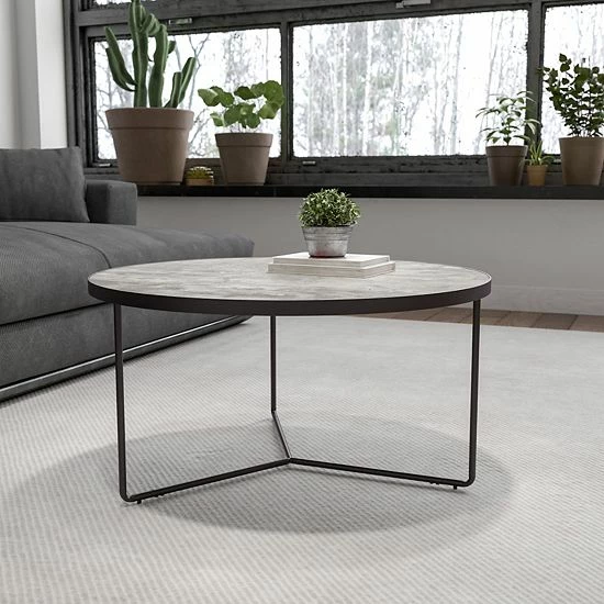 Take a break from the boring and humdrum by adding some extraordinary to your life with this urbane, on-trend style coffee table. Simply shaped with an attractive 3-leg frame and a concrete-like top, this table is ideal for your modern, industrial, or casual room. The metal frame borders the top for an appealing contrast so just add a bouquet of flowers, those family photos or any awesome items that showcase your personality and you’re all set!