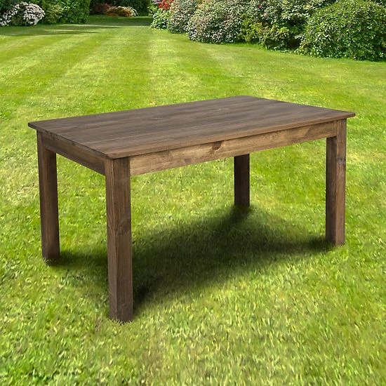 Create a warm atmosphere in your dining room with this rustic solid pine farm table. You’ll have no problem getting everyone around this large dining table that seats six. With its heavy-duty construction this beautiful rustic wood dining table was built to take on the daily activities of the restaurant and hospitality industry. While constructed for indoor use, our dining room table can be taken outdoors for special events like family get-togethers and backyard barbecues during good weather. Make plans to spend more time at the table eating with family on this extra-large table that features a plank, solid pine top with wide apron. To keep in spotless condition use a water based cleaner and follow-up with a dry cloth. Set a simply stylish and rustic anchor in the heart of your home with our rectangular dining room table featuring solid pine construction and a beautiful rustic stain. Pair the dining table with up to six cross back chairs to complete the rustic ambiance.