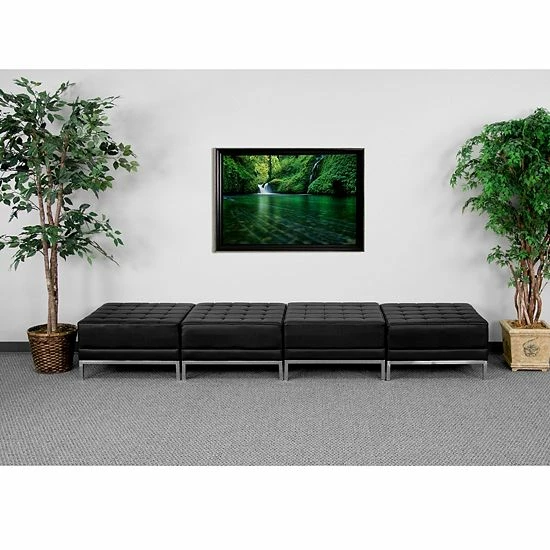 Your lobby or reception area is the forefront of your business and providing distinguished and comfortable seating is the first step towards making a great impression. This collection offers modular pieces. This set groups multiple ottomans together to create a backless seating arrangement, offering a clean appearance to your reception space. For ultimate comfort, each chair from this set offers sink-in softness that is easy to maintain. Built with integrated stainless steel legs, these chairs are stable and strong enough to carry heavy loads.
