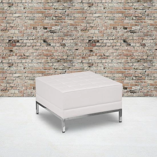 Your lobby or reception area is the forefront of your business and providing distinguished and comfortable seating is the first step towards making a great impression. This ottoman can be used in different seating arrangements or as a spot for clients put their belongings while they wait. Featuring black LeatherSoft tufted upholstery, this elegantly designed ottoman is easy to clean and maintain. LeatherSoft is leather and polyurethane for added softness and durability. This ottoman has a fixed foam filled cushion to provide your guests supreme comfort. This exceptionally durable ottoman is constructed with an integrated stainless steel frame which will withstand years of use. This innovative contemporary ottoman will bring comfort and trend-setting style to your waiting room, reception area or lounge.