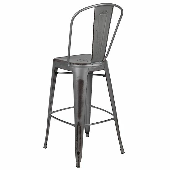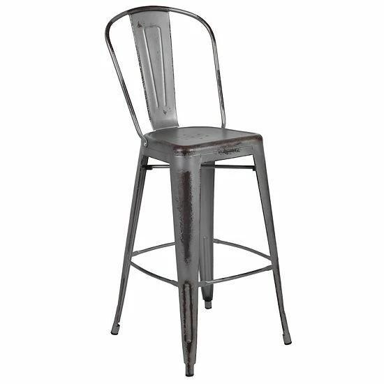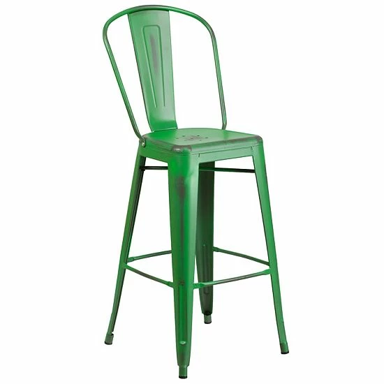Create an eclectic look around your pub height dining room table or a set up a cozy space in your kitchen to enjoy a cup of joe and light breakfast with this distressed dining stool. You’ll be pleasantly surprised how well these distressed metal bar stools blend in with your existing furnishings. Durably constructed, this bar height stool will instantly modernize your restaurant, cafe, or bar by adding splashes of color. Metal barstools with backs provide a comfortable sitting experience, the full back is ergonomically curved and includes a vertical slat. The lower support braces double as a footrest, promoting proper posture. Drain holes prevent pooling in the center of the seat for a faster turn around to seat customers. For longevity, care should be taken to protect from long periods of wet weather. Whether it’s time to update your employee breakroom with some colorful furniture or add some durable seating to your patio furniture collection, this timeless indoor outdoor bar stool delivers.