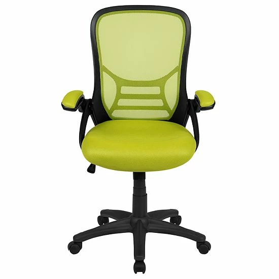 Fall into comfort on this ultra-padded swivel office chair that’ll add personality to your home office or professional office space. Put that old chair to rest, having the support of an ergonomic office chair will help improve your attitude when you no longer must sit in discomfort. This modern office chair is equipped with a lever to control the seat height and activates the seat recline. Mesh office chairs are popular due to their ventilated mesh material that allow air to circulate to your back, keeping you cool and calm. Paired with a contoured padded seat with pressure relieving waterfall edge and a high back this executive office chair will integrate into any space. If you like working with your chair raised high a flip-up arm chair is perfect allowing you to flip the arms upward like an armless chair while pulling yourself close to your desk. You’ll have no problem taking charge of your workday perched on this high back ergonomic office chair with flip-up arms. You’ll wish you had purchased this chair sooner, whether as a personal purchase or to accommodate your entire staff.