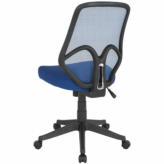 Breathe new life into your office, dorm or home office with this comfortable High Back Mesh Chair. The transparent mesh back allows air to circulate, keeping you cool no matter how high the pressure gets. The swivel seat is foam padded and has a waterfall front for leg comfort. Built-in lumbar support helps prevent back strain and muscle fatigue. Raise and lower the seat using the pneumatic seat height adjustment lever, conveniently located below the seat. The heavy-duty, nylon base with dual wheel casters makes it easy to roll across the floor. Whether you’re studying, browsing or on a tight deadline, this stylish chair will keep you cool and comfortable throughout your busy day.