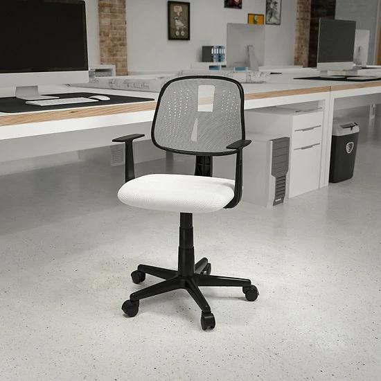 Tackle the workday with any challenge that comes your way on this snazzy desk chair. The cooling designer back features mesh material for exceptional airflow combined with gentle curved lumbar support. Proper support to the upper body provided by the fixed nylon arms. Our Fundamental Task Chair will make an impressive footprint in your office with its cutting edge structure. The innovate back pivots backward while leaning back for a comfortable resting period. Adjust your office desk chair with the pneumatic adjustment lever that controls the height of your seat. Effectively switch between tasks with 360 degrees of swivel motion. Providing exceptional value for today’s modern office, our Fundamental Seating will afford you the opportunity to purchase seating for students and small businesses.
