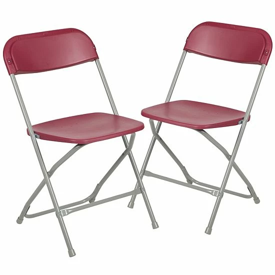 Whether you’re the designated host for holidays and special family events or have your own event planning or catering company this set of 2 beige plastic folding chairs is a perfect solution to your seating dilemma. Extra seating in the home is always a plus or purchase multiple sets of these ultra-strong folding chairs to have your own chair rental business for extra income. Built from premium commercial grade materials and featuring an 18 gauge steel frame with double support braces, these ready to use chairs will accommodate up to 650 lbs weight capacity. The contoured plastic back and textured seat provide the highest level of comfort and security. Stackable up to 50 high from the floor, these folding chairs can be easily stored in a backyard shed or the basement for easy access and wipe clean with water and a dry cloth.