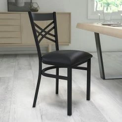 Emma+Oliver Emma And Oliver Black “X” Back Metal Restaurant Chair – Walnut Wood Seat Naturalblack