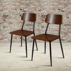 Emma+Oliver Emma And Oliver 2 Pack Stackable Industrial Wood Dining Chair With Gunmetal Steel Frame