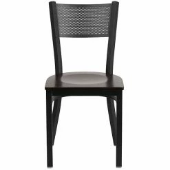 Emma+Oliver Emma And Oliver Black Grid Back Metal Restaurant Chair – Cherry Wood Seat Burgundyblack