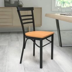 Emma+Oliver Emma And Oliver Black Coffee Back Metal Restaurant Chair – Natural Wood Seat Cherryblack
