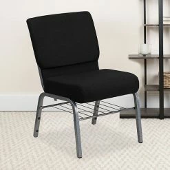 Emma+Oliver Emma And Oliver Auditorium Chair – Black Fabric/Silver Vein Frame – 21″ Seat – Book Rack