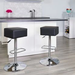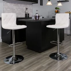 Emma+Oliver Emma And Oliver Button Tufted Gray Vinyl Adjustable Height Barstool With Chrome Base