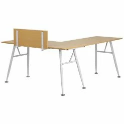 Emma+Oliver Emma And Oliver Beech Laminate L-Shape Computer Desk With White Metal Frame