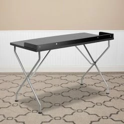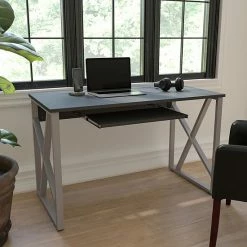Emma+Oliver Emma And Oliver Black Pull-Out Keyboard Computer Desk With Cross-Brace Frame
