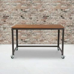 Emma+Oliver Emma And Oliver Mobile Computer Table Desk In Brown Oak Wood Grain Finish