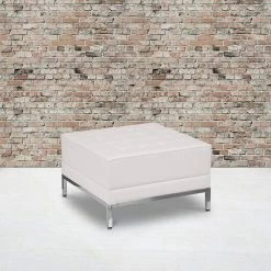 Emma+Oliver Emma And Oliver Taut Upholstered Cube Ottoman Pouf In Black LeatherSoft Black Fabric