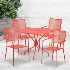 Emma+Oliver Emma And Oliver Commercial Grade 35.25″ Round Coral Patio Table Set-4 Round Back Chairs