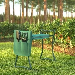 Emma+Oliver Emma And Oliver Foldable Green Garden Kneeler, Weather Resistant Iron Frame With Green Foam Seat And Included Tool Storage Pouch