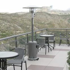 Emma+Oliver Emma And Oliver Outdoor Patio Heater – Silver – 7.5 Feet Round Steel Patio Heater – 40,000 BTU’s