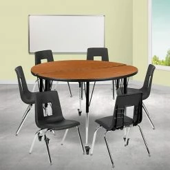 Emma+Oliver Emma And Oliver Mobile 48″ Round Grey HP Laminate Adjustable Activity Table Oak